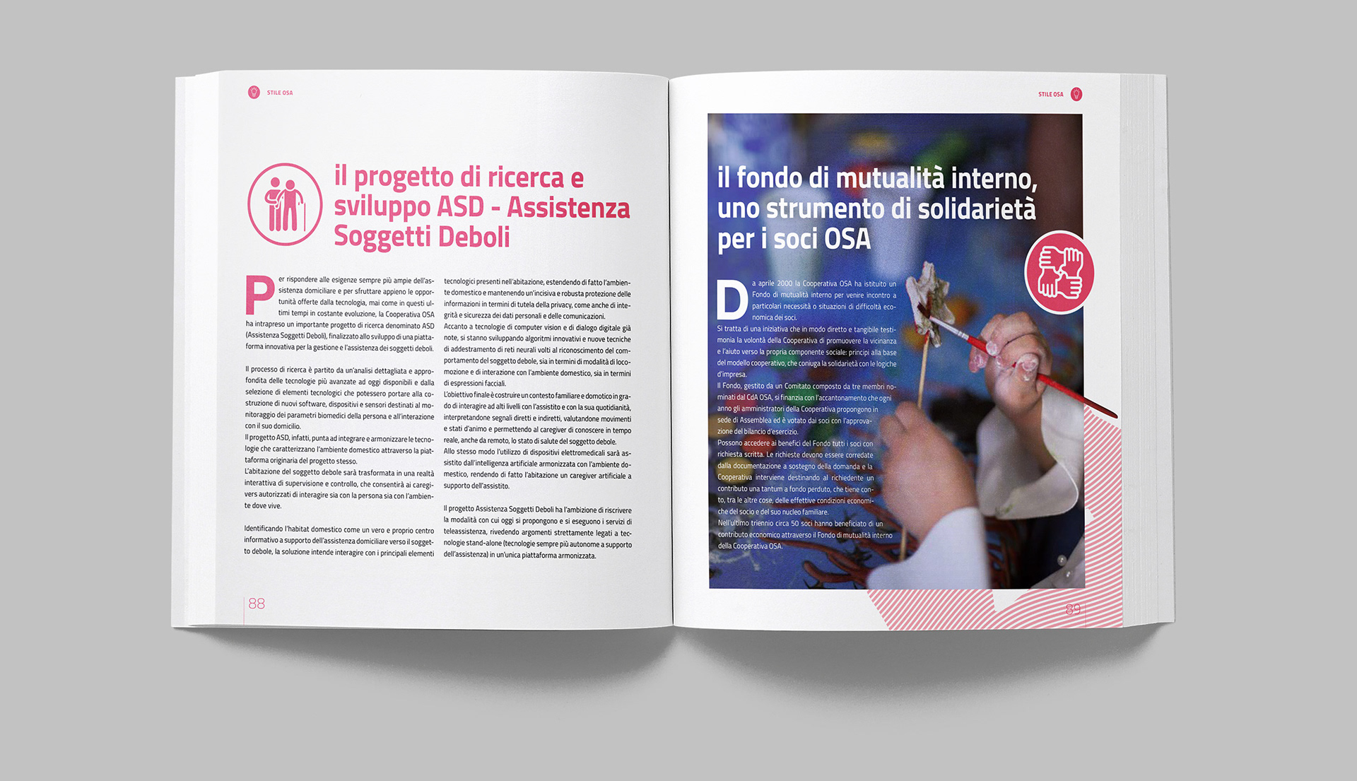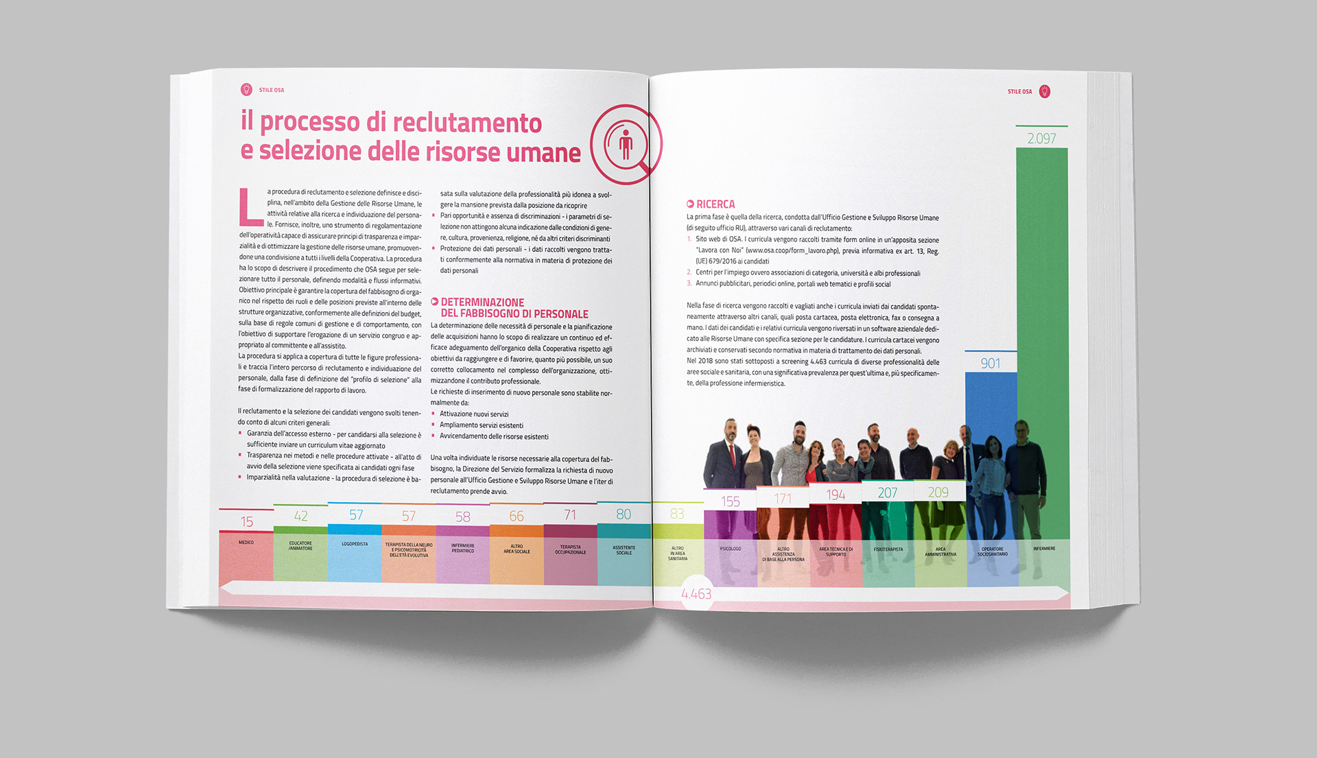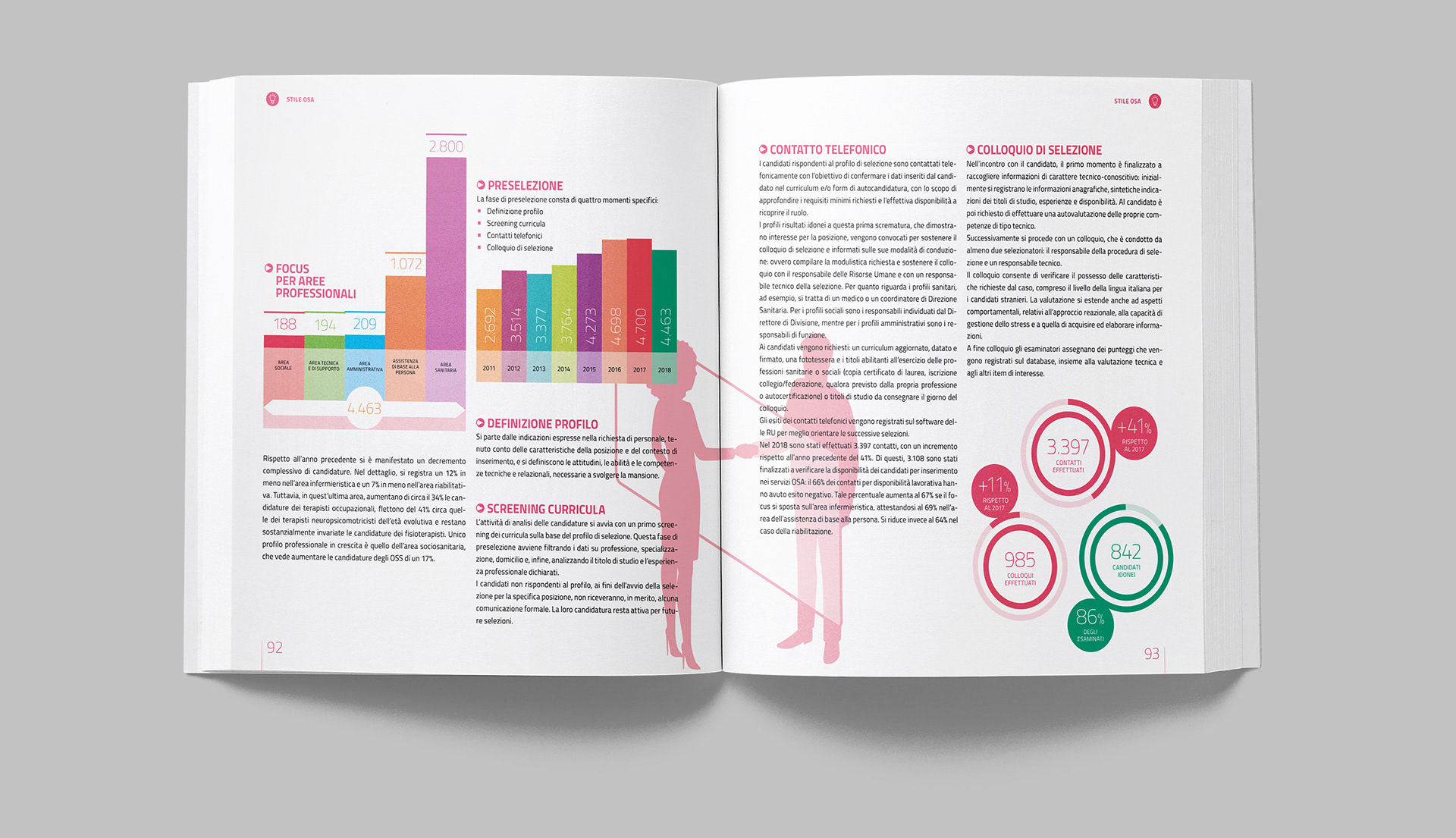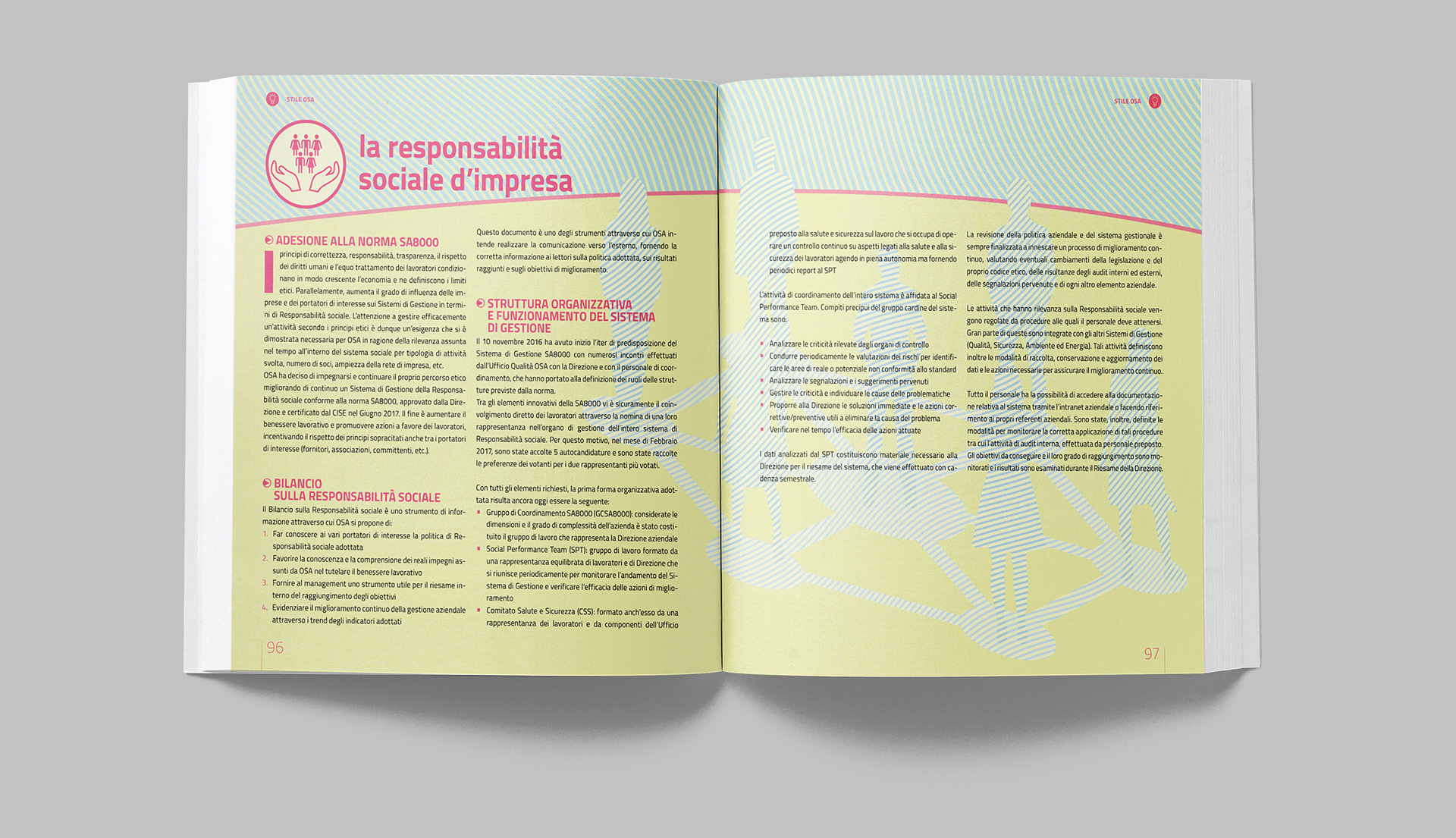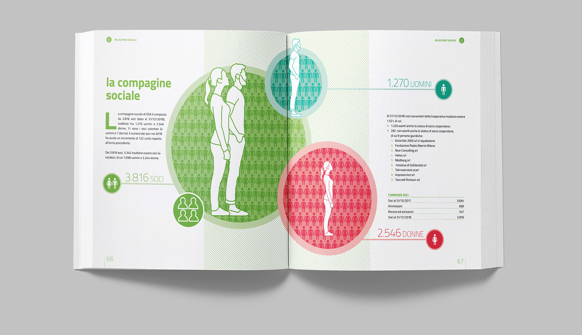 Progettazione grafica del bilancio sociale di OSA, con la realizzazione di illustrazioni e infografiche