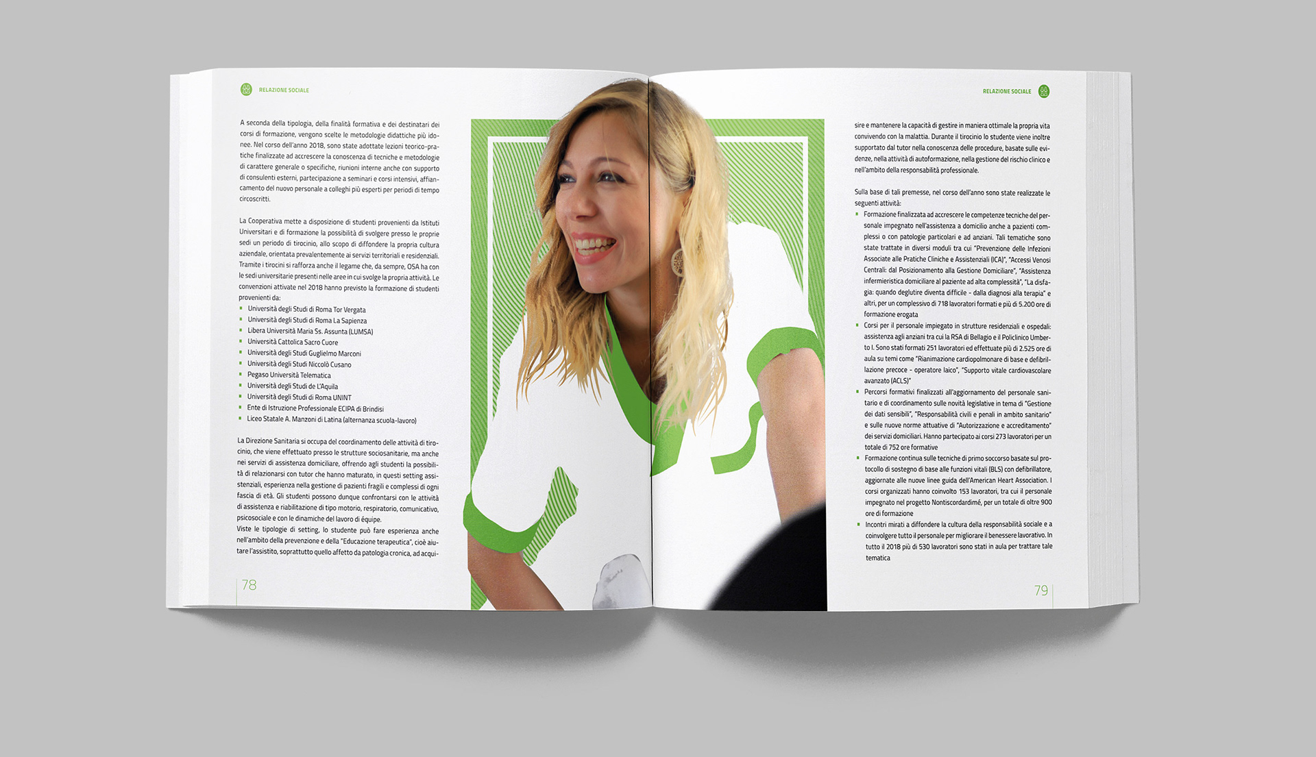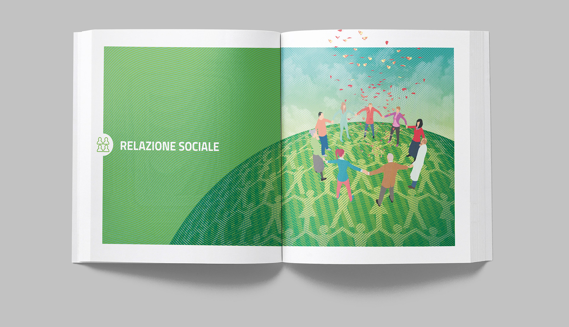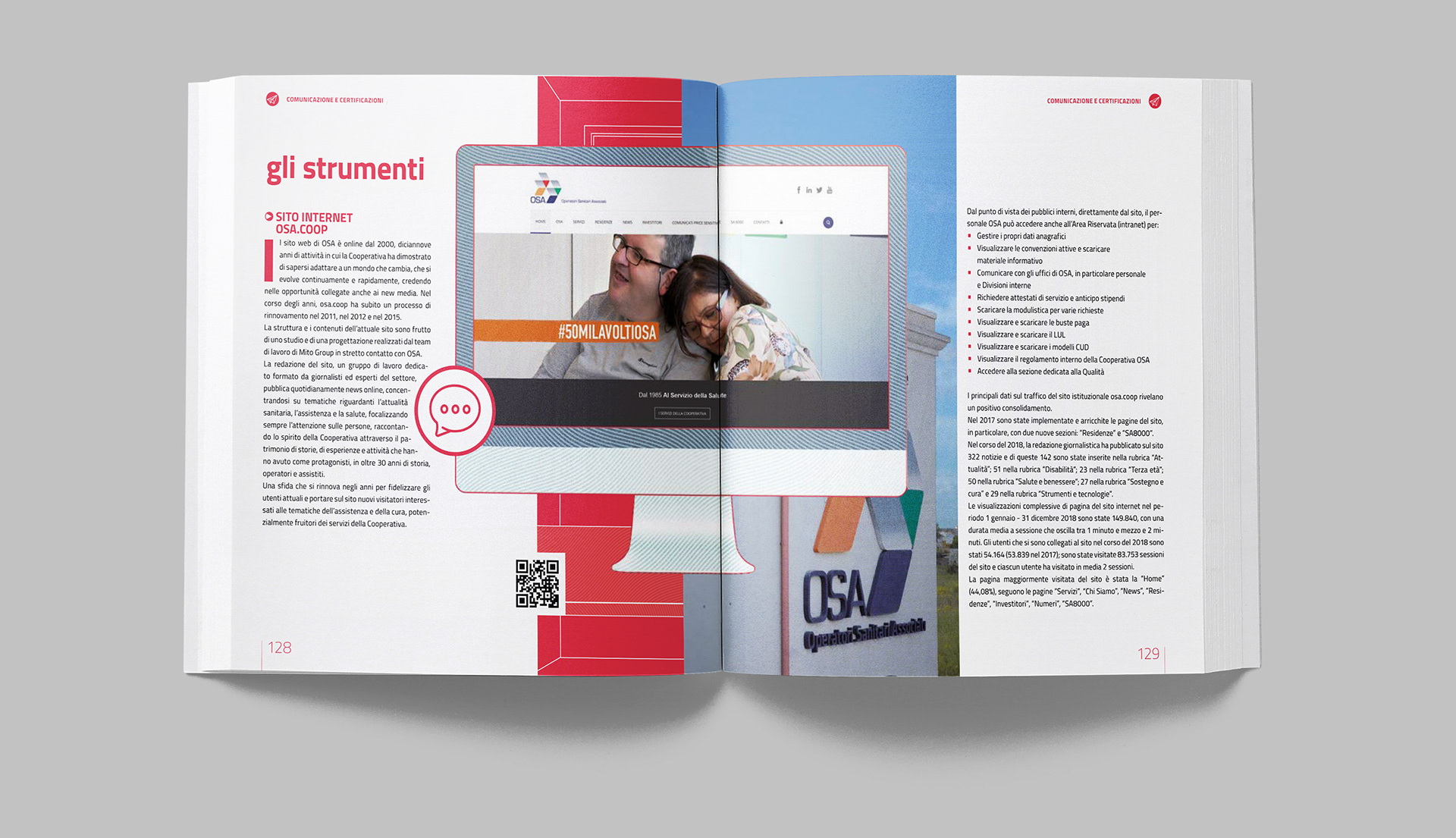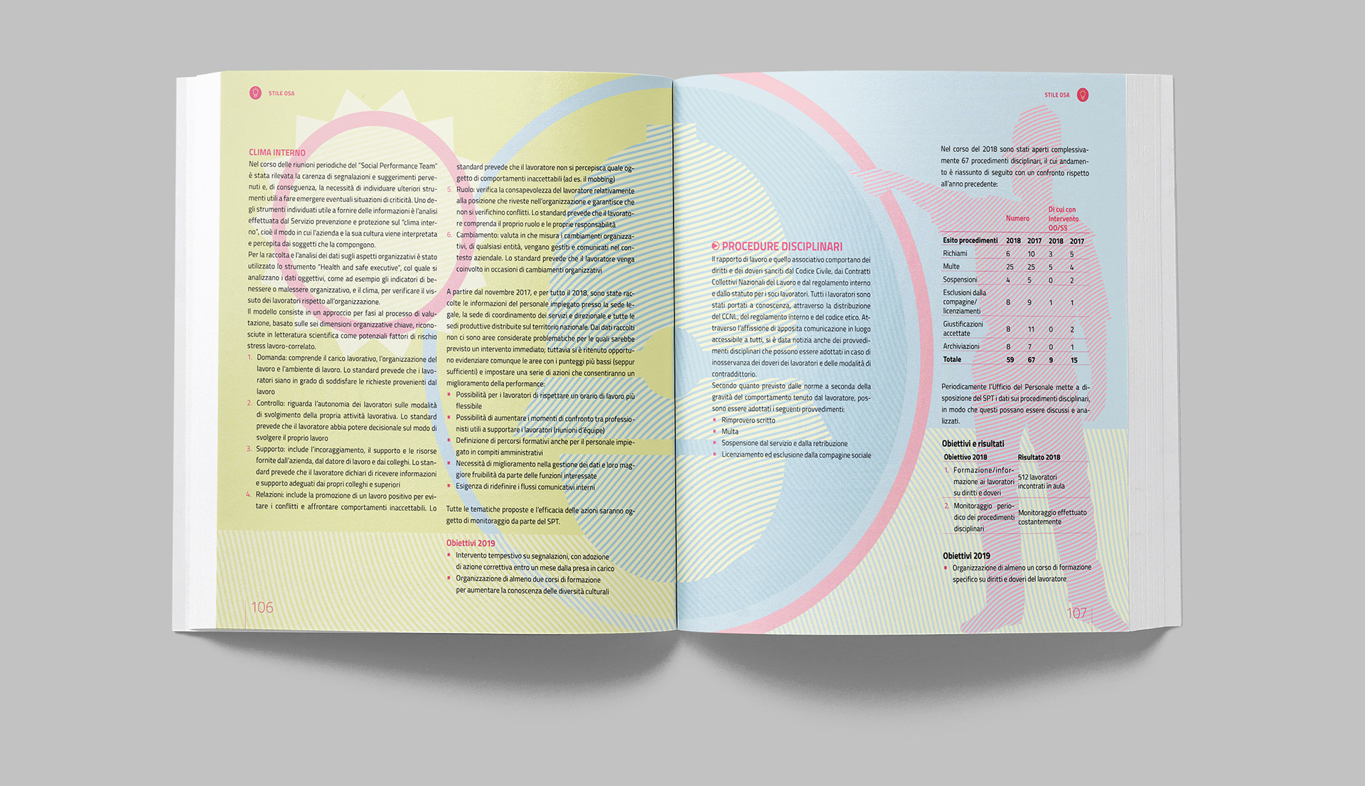 Progettazione grafica del bilancio sociale di OSA, con la realizzazione di illustrazioni e infografiche