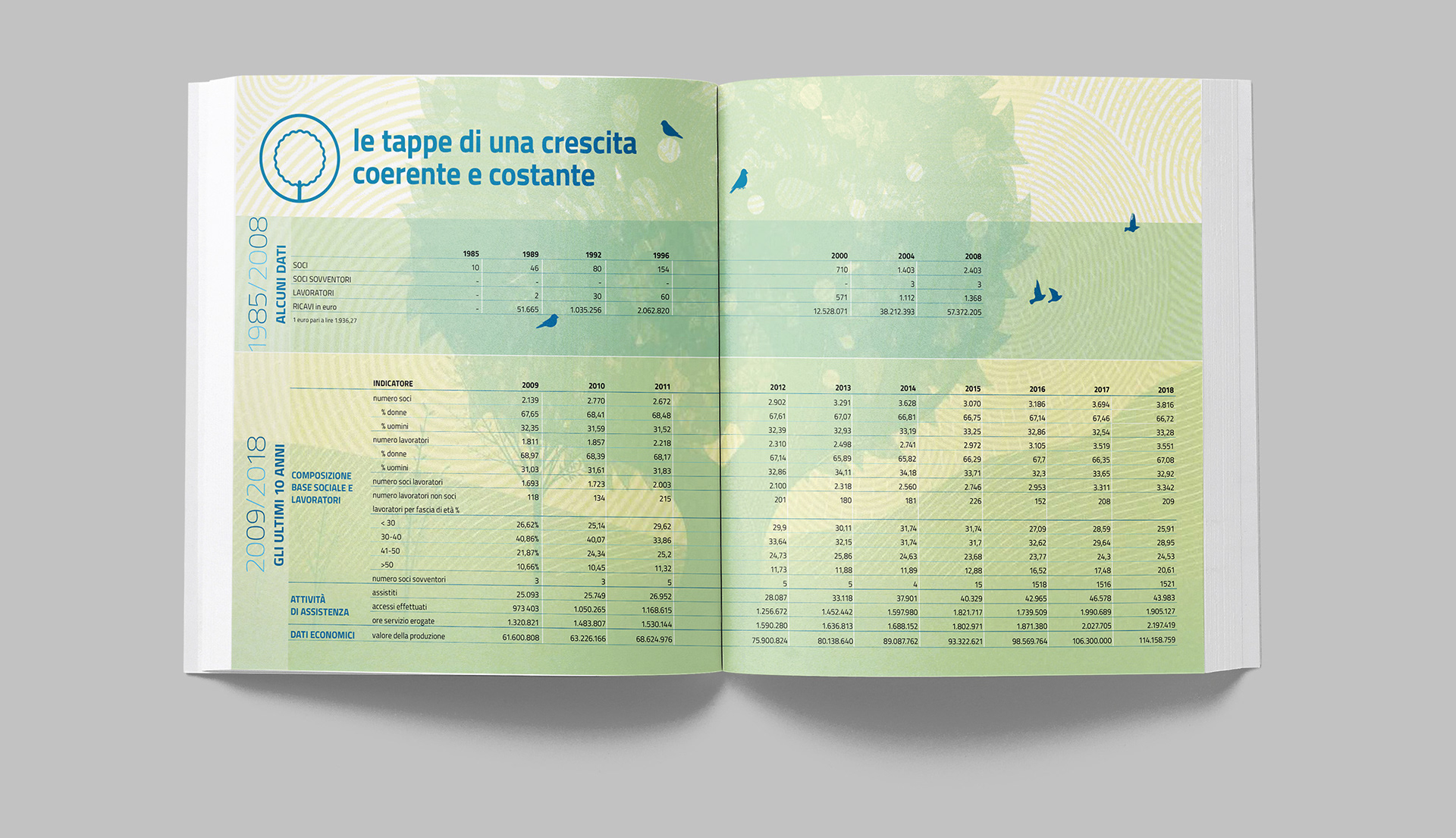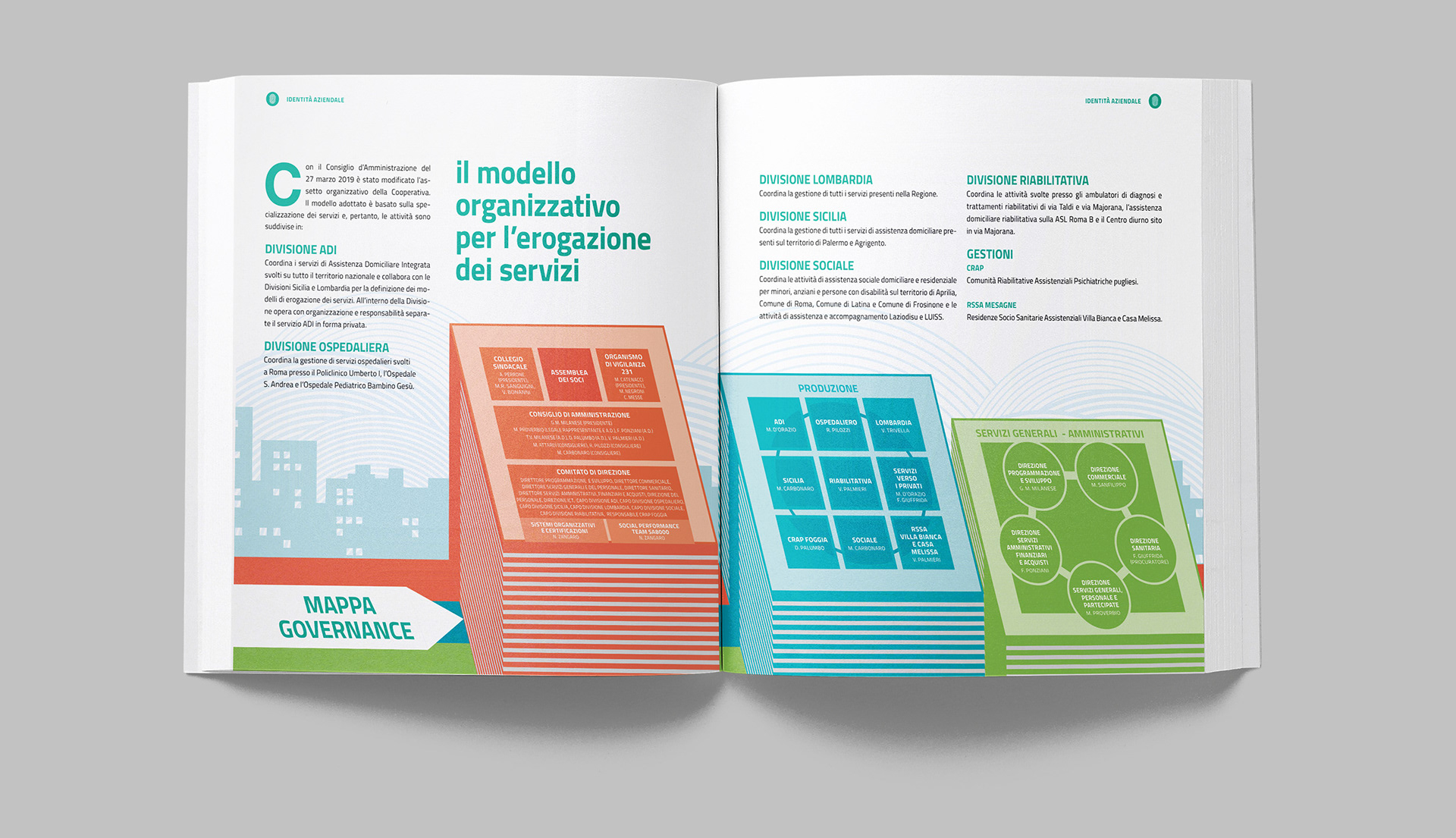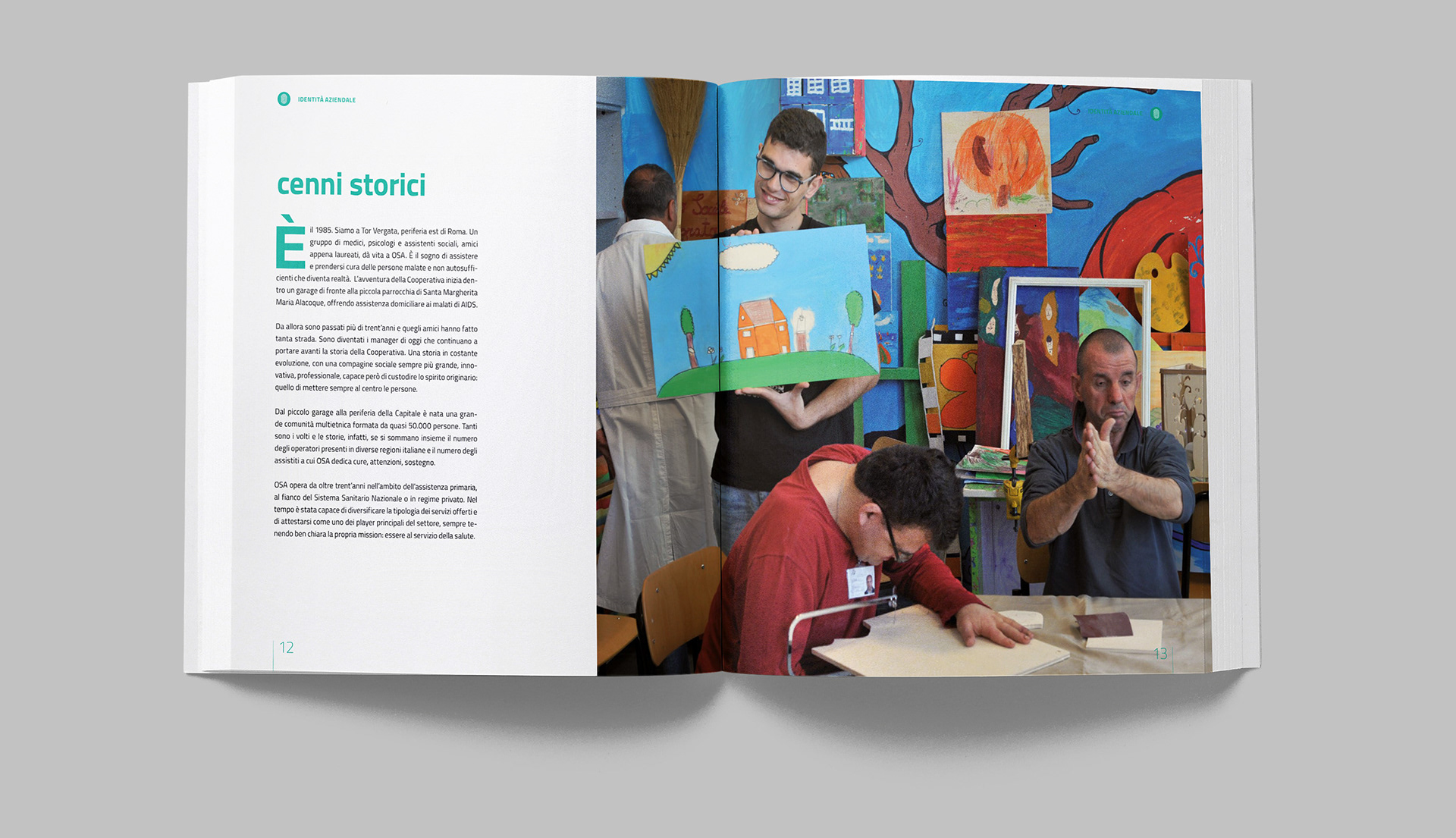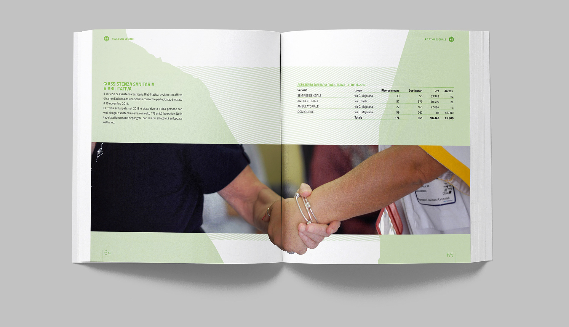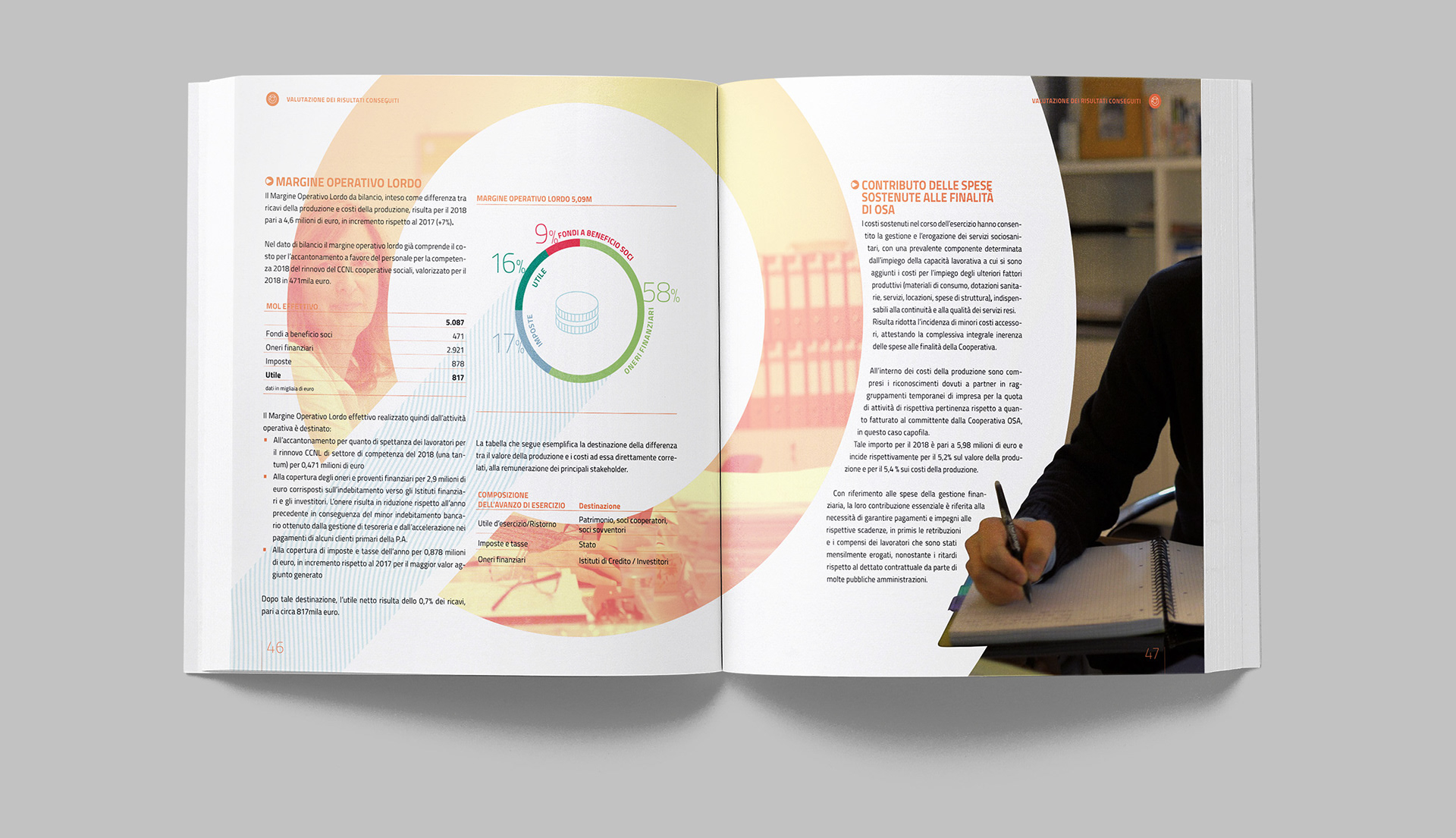 Progettazione grafica del bilancio sociale di OSA, con la realizzazione di illustrazioni e infografiche
