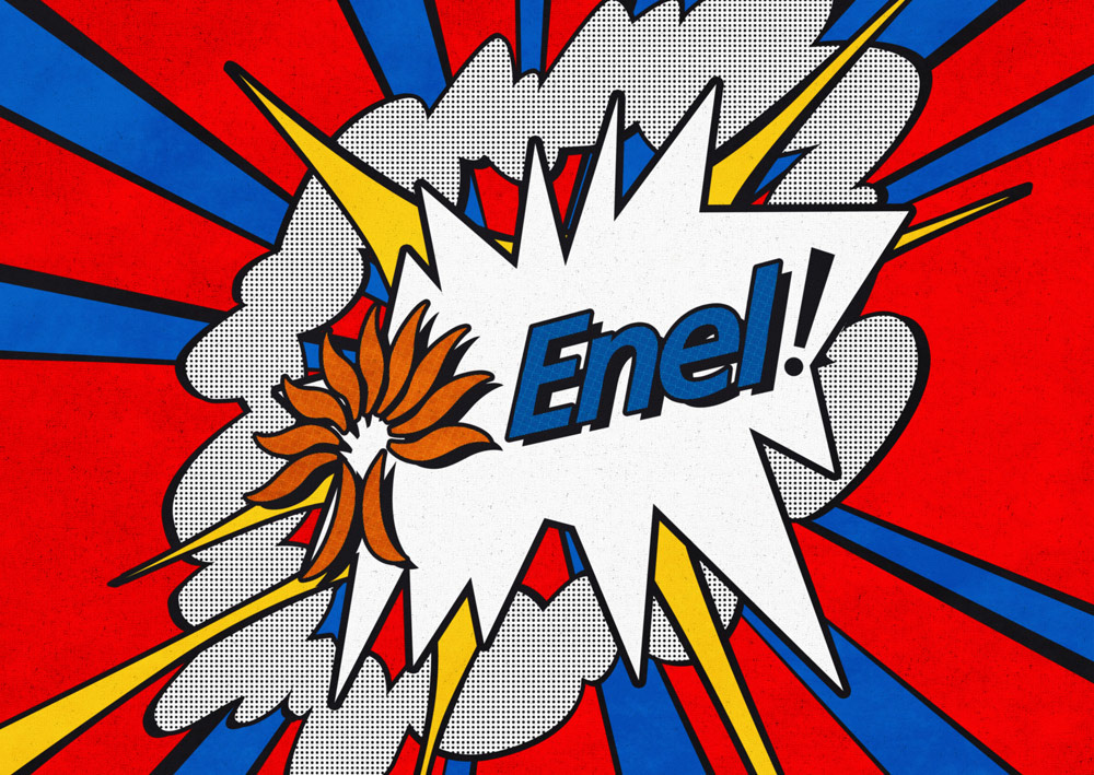 Using the icons of contemporary art, applied to the Enel brand, I wanted to communicate strength, solidity, and modernity combined with irony. These images adorn the offices of the Roman headquarters Enel.