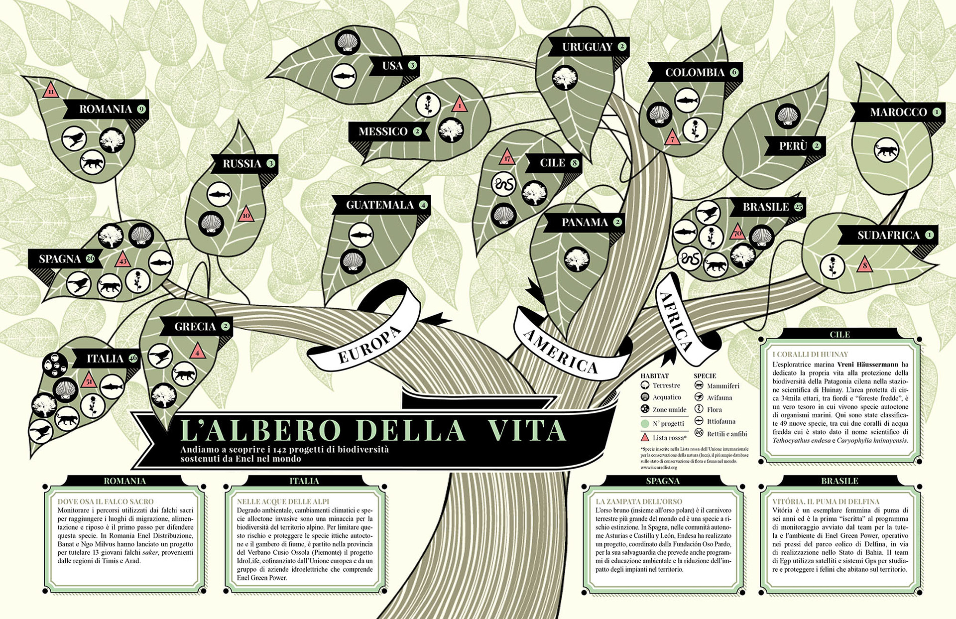 This infographic illustrates biodiversity and was published in eMagazine, the house organ of Enel.